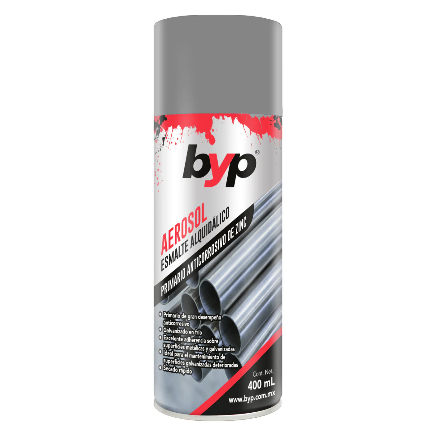 La pintura en Aerosol Primario de ZINC byp ideal primario anticorrosivo rico en Zinc, color gris. Con excelente resistencia a la corrosión y adherencia sobre superficies metálicas.