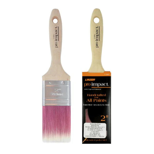Brocha de poliester Pro Impact. Fabricada con mezcla de poliéster.Mango de madera natural y casquillo resistente de acero inoxidable.Pinta más área en menos tiempo.